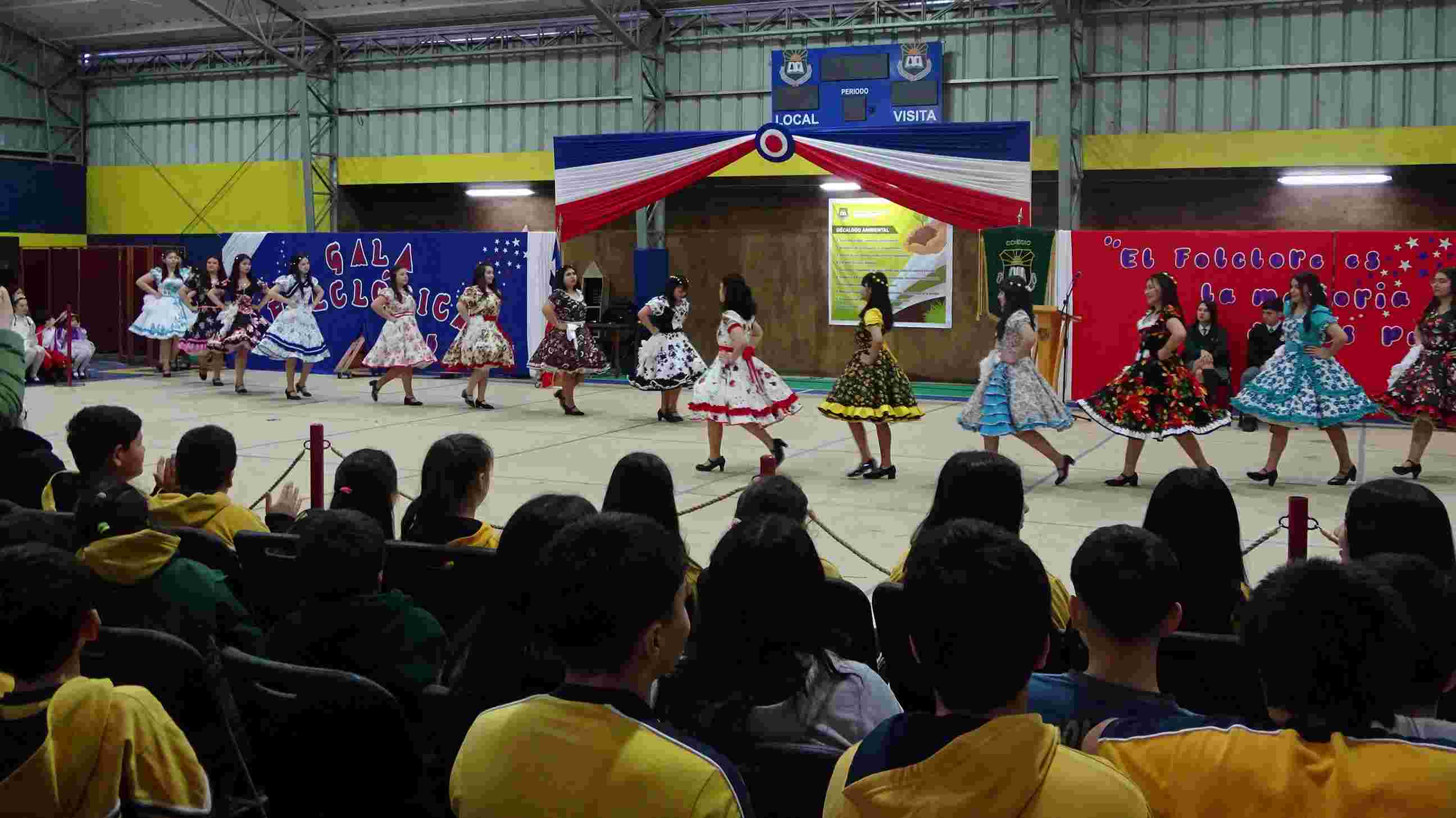 El día jueves 11 de septiembre se realizó la segunda etapa de la Muestra Folclórica 2025 y que se desarrolla mediante el trabajo en aula de la asignatura de Educación Física y la organización del Departamento de Artes y Educación Física. Ese día contó con la participación de los siguientes cursos: 3° básico, 1° básico, 4° básico, 2° básico, 1° medio, 8° básico y 4° medio, quienes demostraron todas las habilidades y destrezas aprendidas durante más de un mes de preparación y que fue demostrada mediante bailes folclóricos de todas las zonas de nuestro país, en especial a cuarto medio quienes realizaron una impecable presentación la que recorrió todas las zonas del país con hermosos bailes y puesta en escena. También participaron de esta presentación los campeones comunales de cueca escolar 2025, Marcelo Saldía e Issidora Jara de primero medio que expusieron todas sus habilidades y que están en preparación para el regional de cueca a realizarse en Pemuco y la vicecampeona de cueca, la estudiante Emilia Canales. Felicitamos a todos los cursos por su gran desempeño, a los profesores de educación física por su liderazgo al momento de motivar a los estudiantes en esta actividad y a los apoderados por su compromiso y disposición al momento de colaborar con esta gran actividad