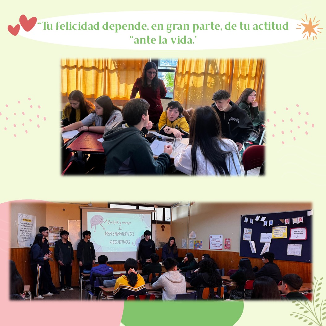 El viernes 10 de octubre de 2025, se desarrolló en nuestro establecimiento una significativa intervención educativa en el marco del Día Mundial de la Salud Mental, liderada por los estudiantes de Cuarto Año Medio. El proyecto tuvo como propósito difundir prácticas de autocuidado y bienestar emocional, basadas en las enseñanzas del libro “Cómo hacer que te pasen cosas buenas”, de la médico psiquiatra Marian Rojas Estapé. La actividad se llevó a cabo en distintas salas de clases, con la participación de estudiantes de Cuarto, Séptimo y Octavo Básico, además de Primero, Segundo y Tercer Medio. Los grupos de Cuarto Medio desarrollaron presentaciones y dinámicas que promovieron la reflexión sobre la salud mental, la empatía y los hábitos saludables. Agradecemos la colaboración de los docentes Larisa Altamirano, Ana María Fuentealba, Sebastián Mora y Débora Fuenzalida, junto a las psicólogas Andrea Arana y Adela Chavarría, por su acompañamiento y compromiso en esta valiosa iniciativa. Esta jornada reafirma nuestro compromiso como comunidad educativa con el bienestar integral de nuestros estudiantes y la promoción de una convivencia escolar sana y empática.