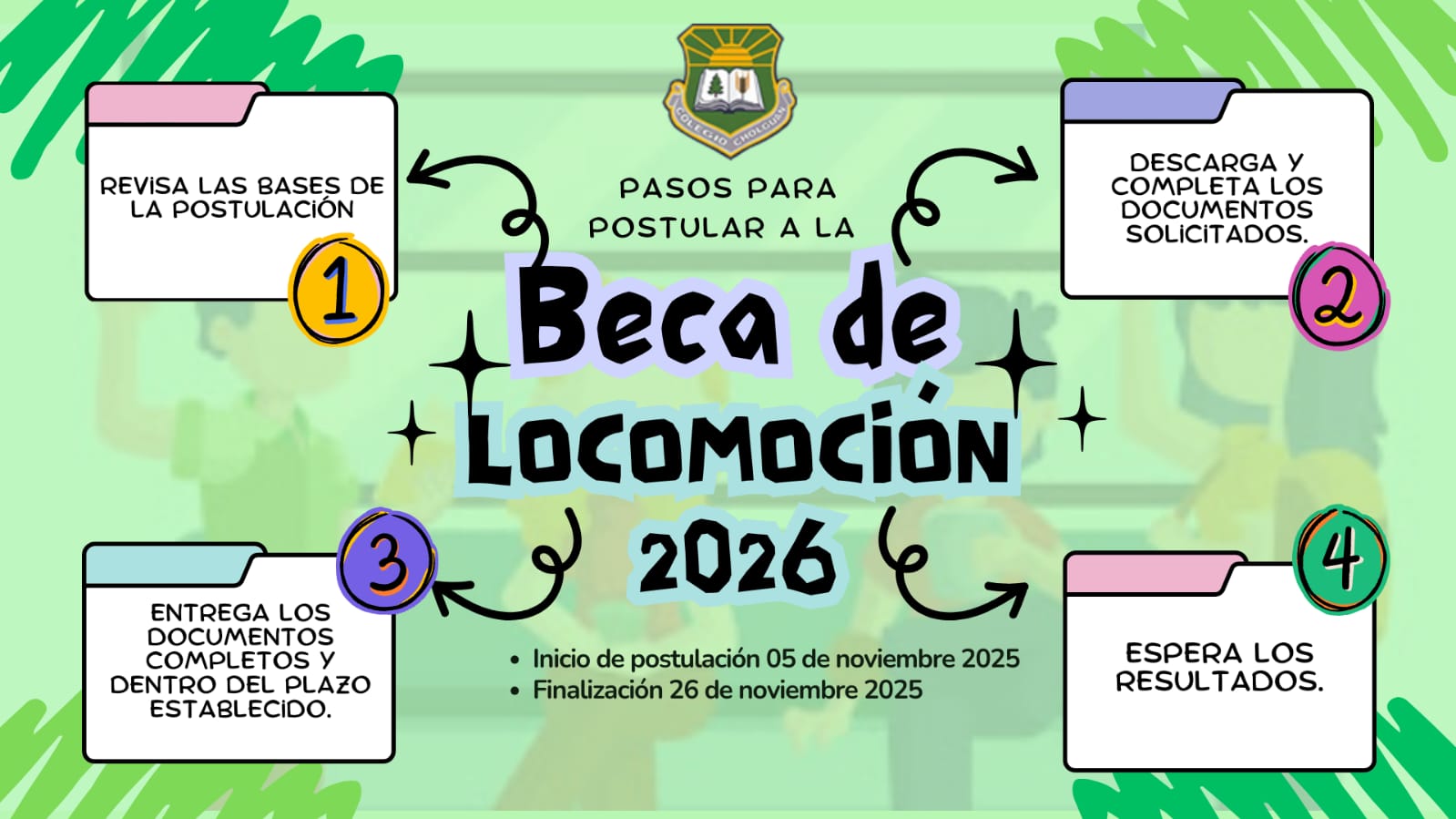 beca de locomoción 2026, en donde cuyo propósito es apoyar y facilitar la continuidad de estudios a los y las estudiantes