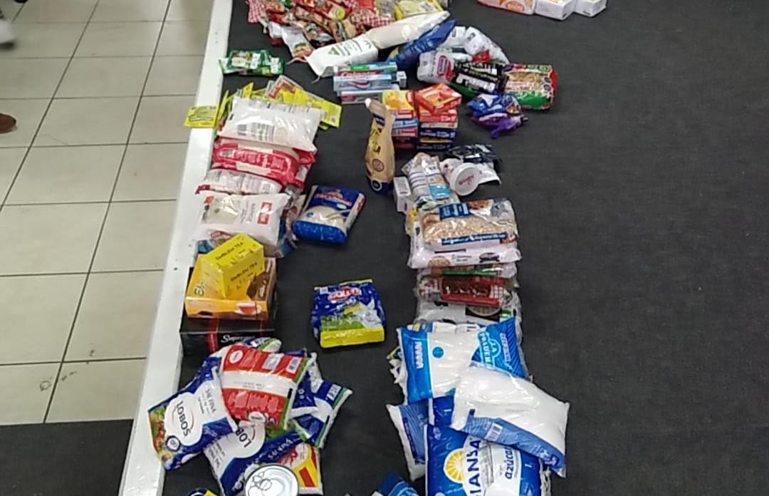 jefe. Los Estudiantes del colegio traen alimentos no perecibles para formar una caja solidaria
