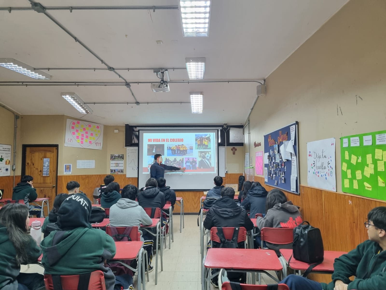 En el marco del Plan de Autoestima Académica y Motivación Escolar, nuestro establecimiento recibió con gran orgullo a un grupo de ex alumnos y ex alumnas que compartieron con los estudiantes sus experiencias, aprendizajes y desafíos vividos durante su etapa escolar y en su trayectoria posterior. El encuentro tuvo como propósito fortalecer la confianza, la motivación y las expectativas académicas de nuestros estudiantes, promoviendo el reconocimiento del esfuerzo, la perseverancia y el valor de la educación como herramienta de superación personal y profesional. Durante la jornada, los ex alumnos relataron cómo los valores y aprendizajes adquiridos en el colegio marcaron positivamente sus vidas, alentando a los actuales estudiantes a creer en sus capacidades y proyectar sus metas con optimismo y compromiso. Esta valiosa actividad se enmarca en las acciones que el establecimiento impulsa para potenciar el bienestar, la autoestima académica y la motivación escolar, fortaleciendo así el sentido de pertenencia y la identidad institucional. Cabe destacar que estas charlas se han estado desarrollando durante el segundo semestre del año en curso y aún nos quedan más por disfrutar.